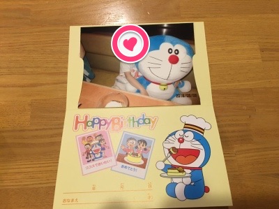 最後に、ドラえもんグッズとさっき撮影した写真は専用のドラえもんバースデーカード入れておめでとうございます。と手渡されて終了となります。